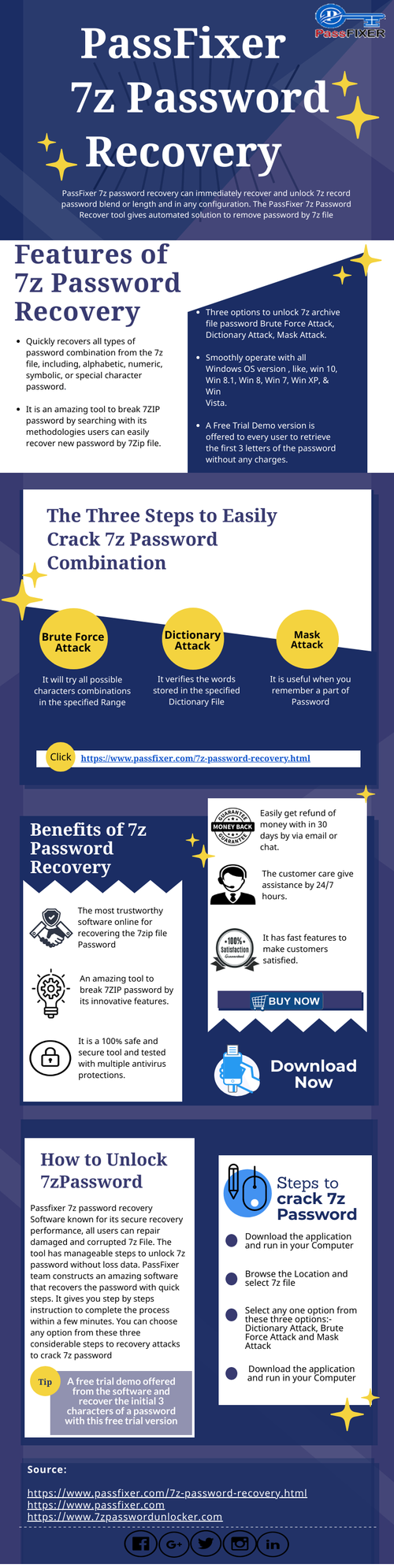 Finding out complex combinations of password is easy and fast with the help of PassFixer 7zip password recovery software. The software helps the user to find first few characters of the password. It scans the file deeply and helps the user to fix the encrypted files. The user can recover the password instantly.