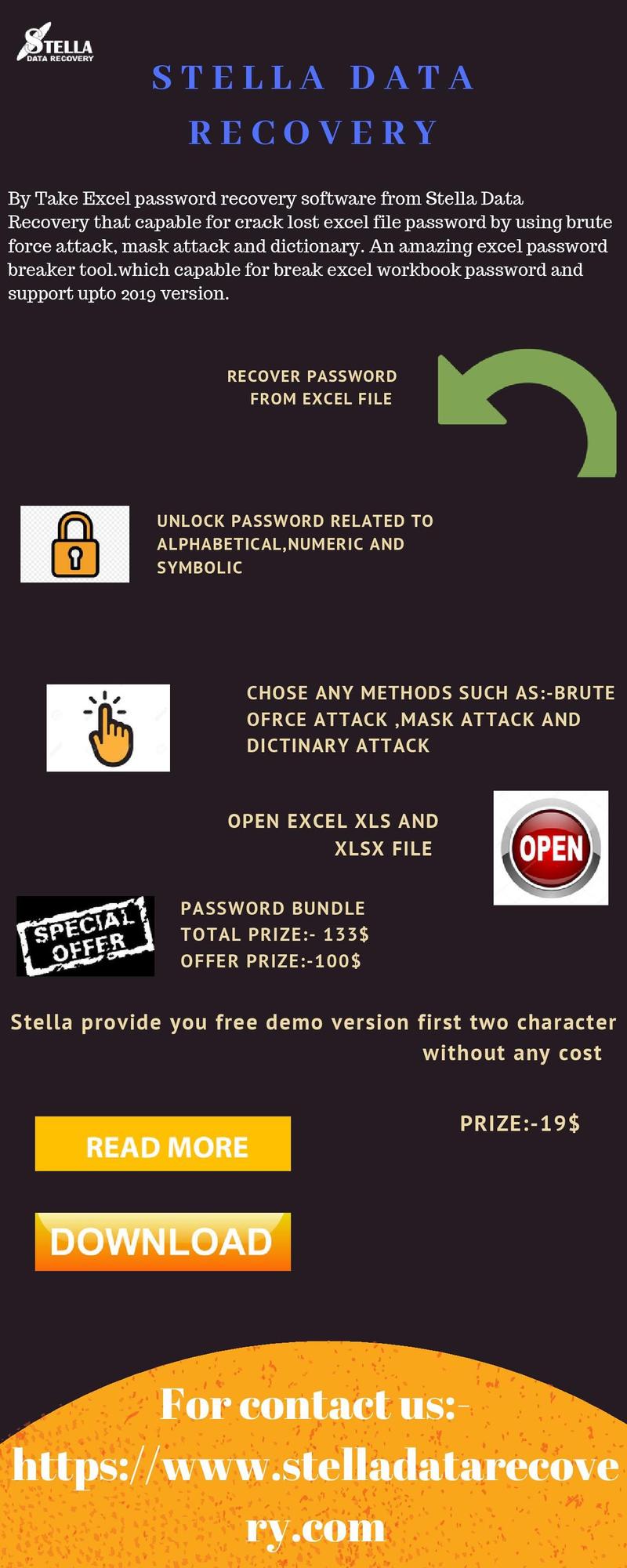 Stella xls password recovery software is the one of the most effective software for recovering the entire xls file's password by employing three best password recovery methods. This software was specifically designed to recover encrypted passwords of the excel file. This software can recover the worksheet password and all workbook passwords the software is able to recover all versions 32bit and 64bit excel file password.