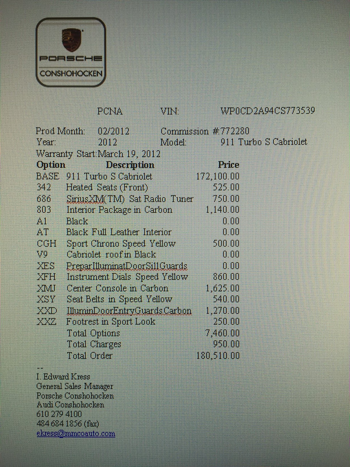 ASKING $112,500. LOOKING FOR A QUICK SALE OTHERWISE ITS GOING BACK TO THE DEALERSHIP NEXT WEEK. NEW CAR ON THE WAY. MAKE A REASONABLE OFFER. I PURCHASED THE CAR FOR OVER $180,000. SEE PIC OF BUILD SHEET.
