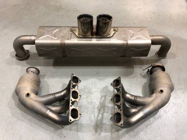 For sale is a full titanium Akrapovic Evo Race exhaust system for a Porsche 911 GT3RS (991.1). The Evo Race system includes a 100 cell cats with optimized headers and a center muffler design. This exhaust system is estimated to add 19.9HP and 37.3LB/TQ. It weights 49LBS less than the factory exhaust system. The exhaust is in excellent condition and ready to be installed. Because of the 100 cell cats, Akrapovic recommends purchasing their Delete-R module to eliminate any possibility of a CEL.