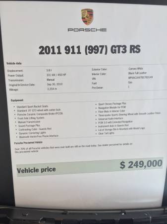 Up for sale is a beautiful 2011 997 Porsche GT3 RS.