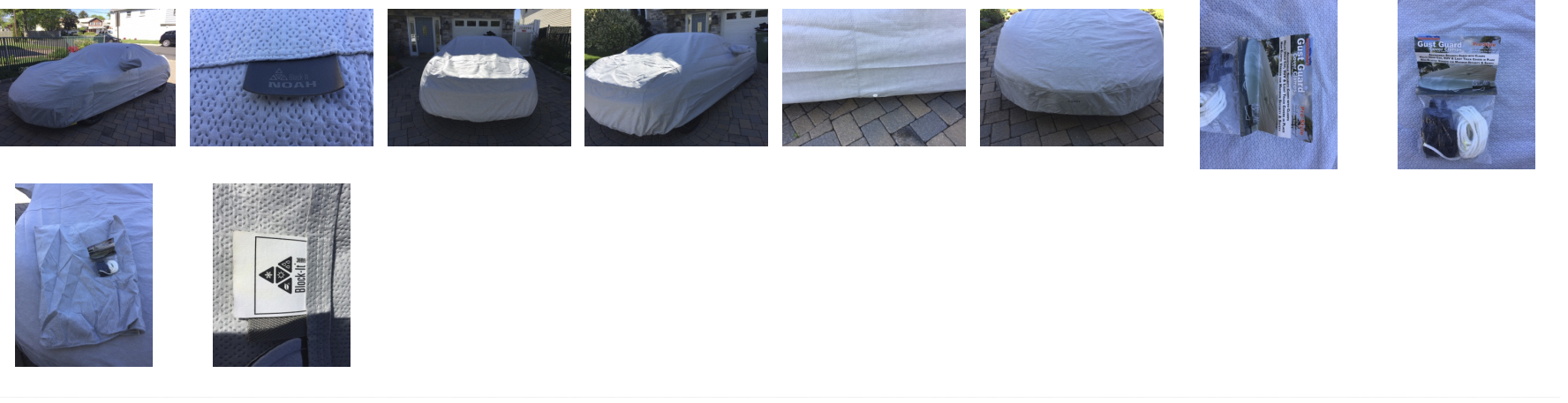 For sale is a new, used only twice Covercraft Noah car cover. New condition. It comes with carry bag, gust guard, lock and cord. Equipped with plastic (non-scratch) grommets. Thick 4 ply non-woven all weather protection. Made in USA. Comes with instructions pamphlet. Brand new cover goes for around $250